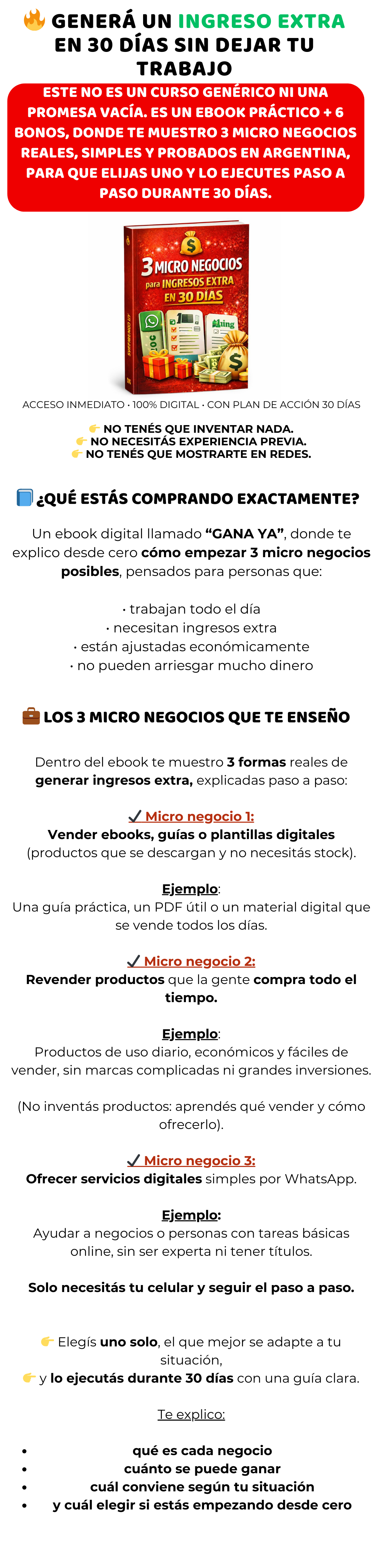 No es una promesa mágica, sino un plan realista basado en micro negocios simples y probados en Argentina.